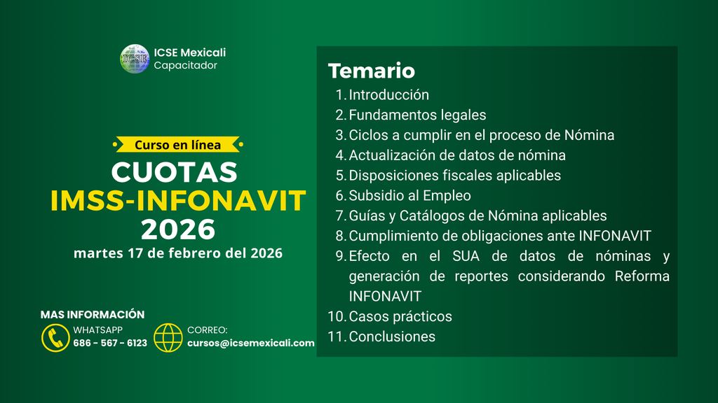 Curso en línea: "Cuotas IMSS-INFONAVIT 2026"