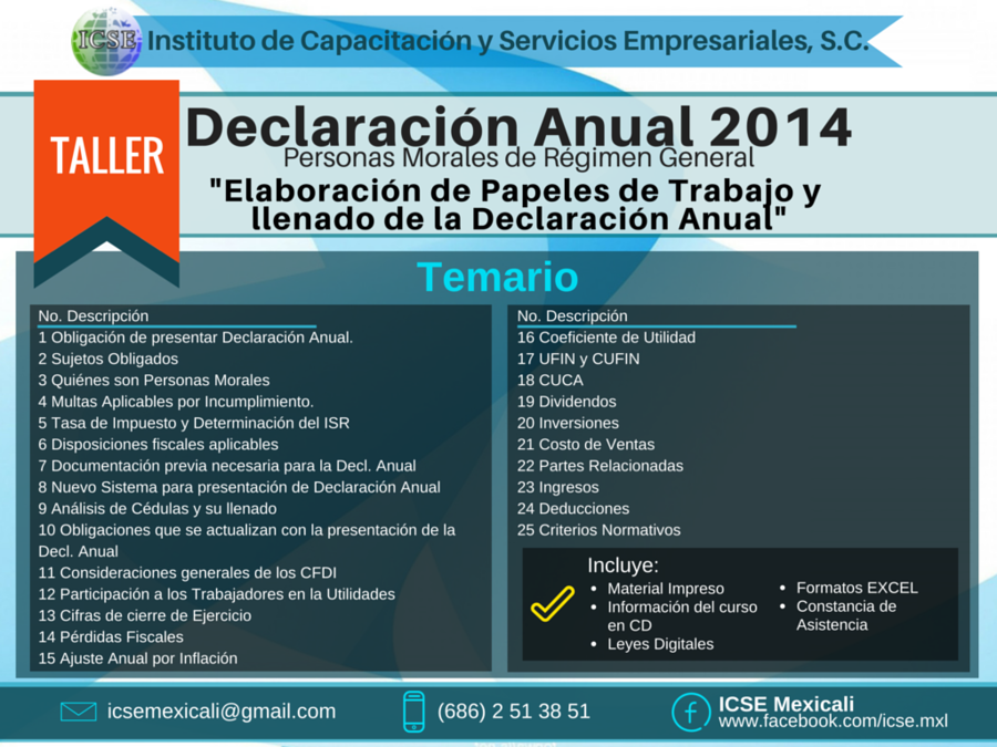 El asistente aprenderá a elaborar los papeles de trabajo y llenar la Declaracion Anual para personas morales.