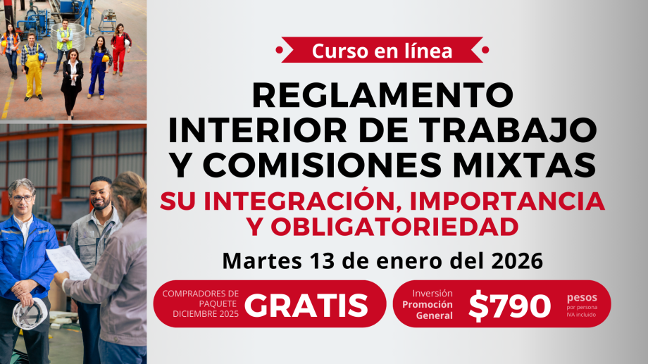 Curso en línea: "Reglamento Interior de Trabajo y Comisiones Mixtas - Su integración, importancia y obligatoriedad"